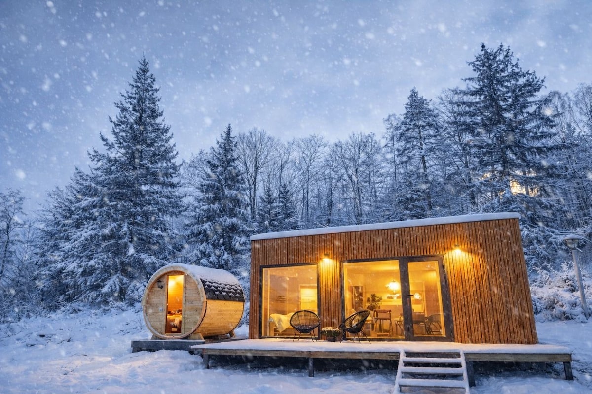 村へようこそ。 クシボクラトの森とベロウンカ渓谷の静かで美しい自然の中にあります。ヒースコフスキー・ポトーク川の絵のように美しい池のそばにある新しくオープンしたグランピングコテージで、心地よい休息をお楽しみください。2〜4名様用の豪華で設備の整ったオリジナルのエアコン付きコテージが4軒あります。各コテージにはテラス、水辺の桟橋、鍵付きの自転車ボックスが付いています。充電ステーションを備えた駐車場、2つの池、透明な水のある遊泳用の池が含まれています。
