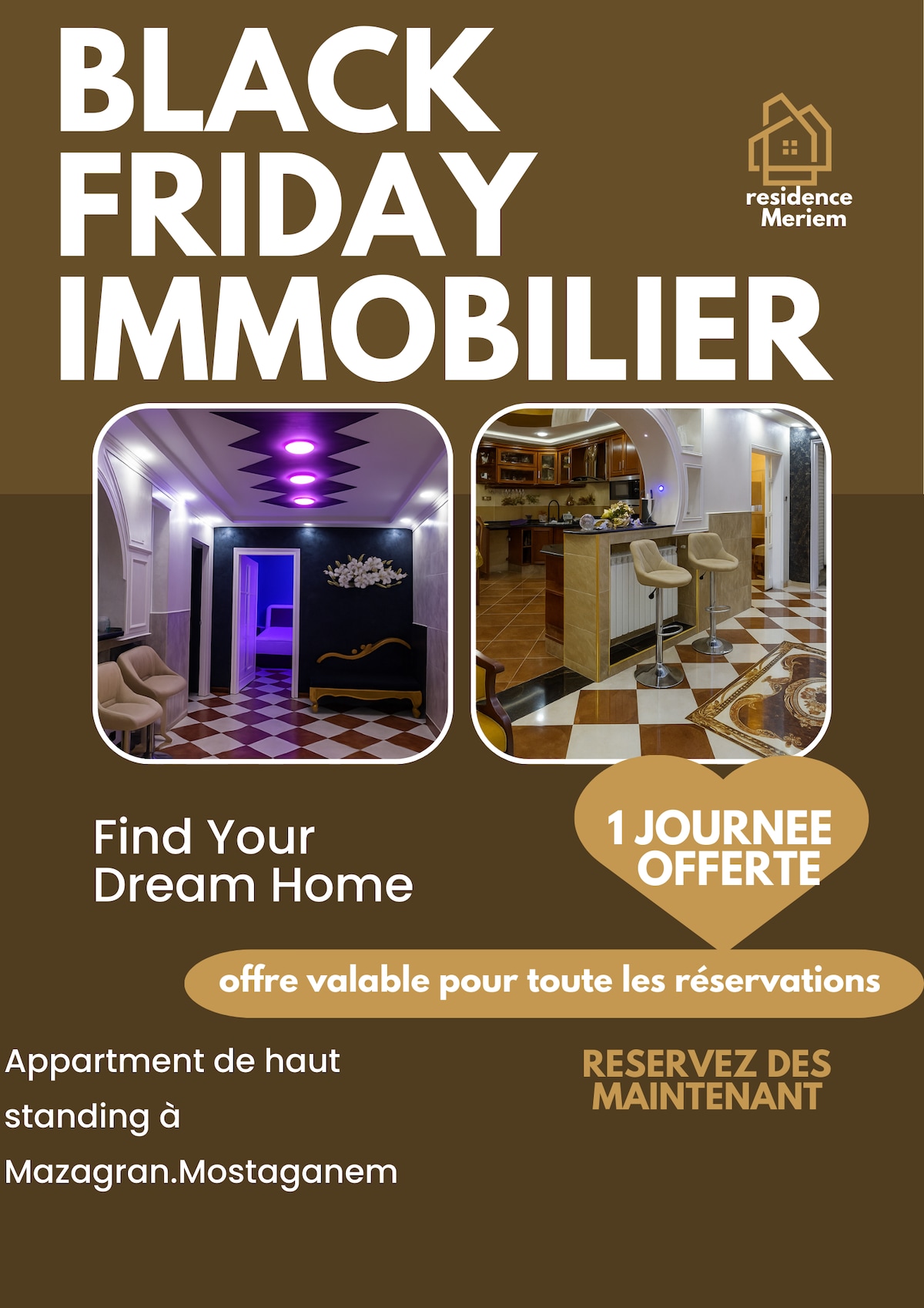 appartement F3 complètement refait à neuf à Mostaganem (quartier la salamandre) 200m du front de mer (restaurants, cafés, glaciers...) 100m de la station de tram (tram qui depose juste en face du parc d attractions MOSTALAND notamment) Station de taxi au pied de l immeuble Quartier avec toutes les commodités (mosquée, boulangerie, primeur, boucherie, supérette, pharmacie....) Appartement bien équipé (machine à laver, plaque de cuisson, micro-onde, bouilloire, tv plasma, climatiseur...)