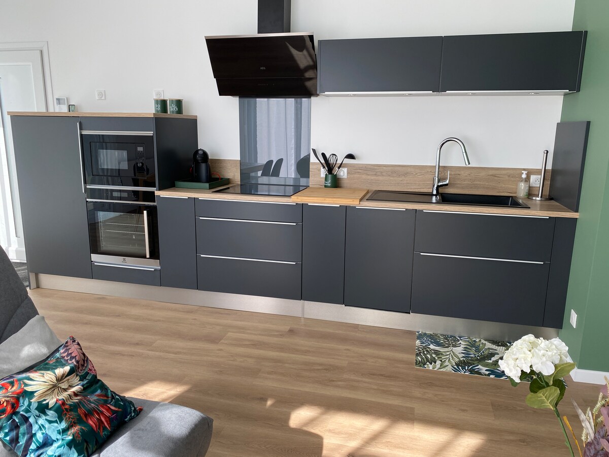 Appartement privatif lumineux proche de toutes commodités dans un village paisible. Logement tout équipé, avec une cuisine aménagée. Partie Privative : 2 chambres avec lit double, salle de vie, salon avec 1 canapé lit 2 places et 1 canape lit 1 place, salle d'eau, buanderie, garde mangé, WC et local laverie. équipement bébé ( lit/table a langé ) Parties communes : Jardin (BBQ,Jeux enfants, 🏓). Mise à disposition gratuitement selon disponibilité : 2 vélos, console de jeux, jeux de société.