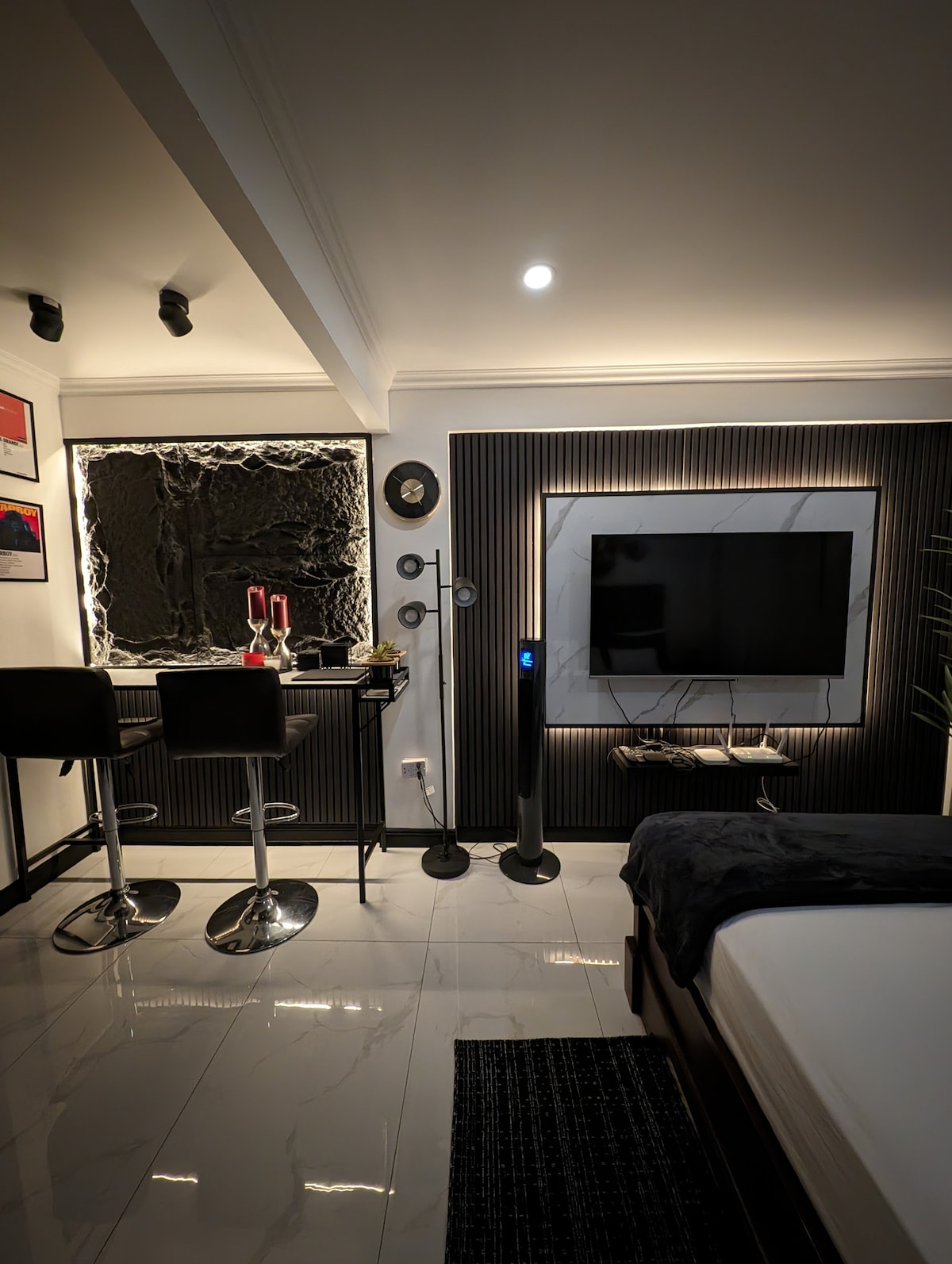 新しい1寝室650平方フィートのアパートで、モダンなアメニティがすべて揃っていますので、楽に過ごし、静かでリラックスできます。 このお部屋には、深夜のドリンクや朝のコーヒーに最適な、専用バスルームと景色の良いバルコニービューを備えたマスターベッドルームがあります。 全室にスマート音声コントロールのエアコンが備わっています。 このフラットはAlexaに完全対応しており、すべての照明、寝室の扇風機、音楽などに音声コマンドを使用する柔軟性を提供します。