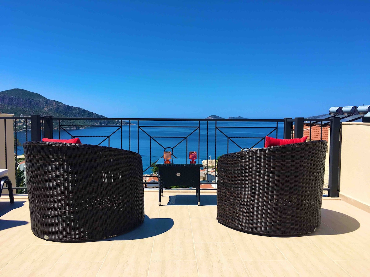 カルカンの豪華ヴィラ、海まで100m、パノラマビュー
