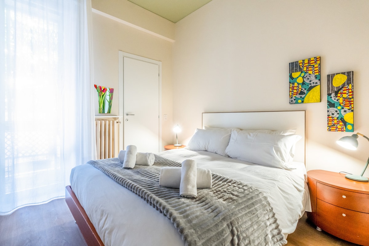 静かでエレガントなオアシスでリラックスして、エネルギーを充電しましょう。最近改装された広々とした1LDKアパートメントは、ダブルベッド1台と仕事用デスクを備えた寝室から構成されています。快適なフランス式ソファーベッドのあるリビング、調理に必要なものがすべて揃ったキッチン、広々としたシャワー付きバスルーム。5階に位置し、美しいバルコニーがあり、地下鉄1号線から徒歩数歩の静かなマンションで、わずか20分でミラノの中心部に行くことができます。