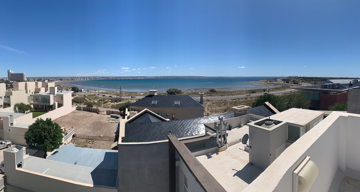 Departamento con hermosa vista al mar en un 5to piso, a 5 cuadras del centro comercial y 6 cuadras del muelle de Pto Madryn, con el acceso más cercano de la ciudad al mar. Apartment with beautiful sea view on the 5th floor, 5 blocks from the commercial center and 6 blocks from the pier of Pto Madryn, with the closest access from the city to the sea.