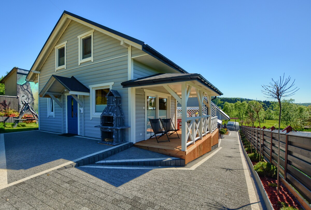 Nowy, komfortowy domek całoroczny w Ustrzykach Dolnych położony na zboczu z pięknymi widokami na dolinę Ustrzyk Dolnych i góry. Nasz obiekt znajduję się w wyjątkowej lokalizacji na zboczu góry Kamienna Laworta, z którego rozpościerają się piękne widoki na dolinę Ustrzyk Dolnych i okoliczne góry. Do ściany lasu i ścieżek spacerowych jest zaledwie 300 metrów, natomiast spacer do centrum miasta zajmuje 10 minut. W domku może wypoczywać maksymalnie 8 osób.