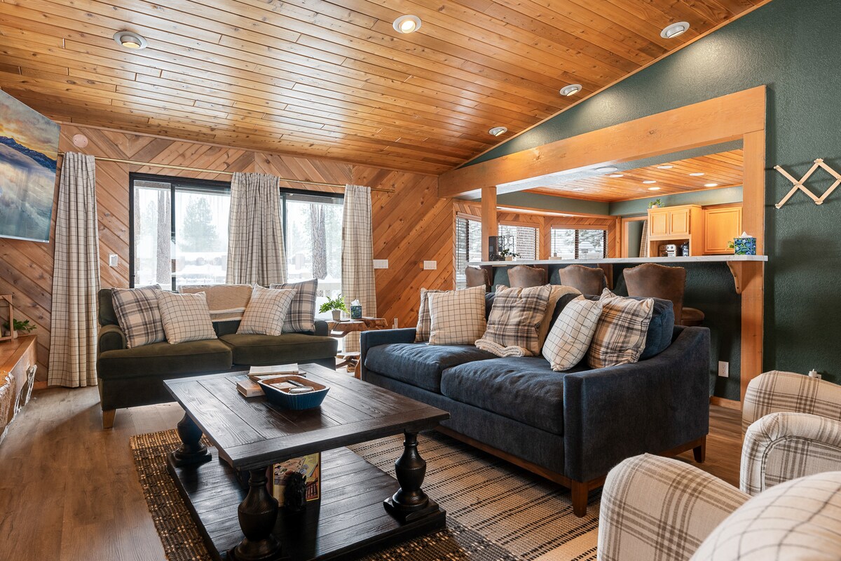 No detail’s been overlooked at our luxurious mountain retreat on 1/2 acre in Moonridge. Sleeps 8. Soak in the jacuzzi, enjoy coffee or cocktails on the porch swing, sit around the fire table or outdoor dining set, BBQ or make pancakes on our huge grill. Use the Peloton or private sauna. Play pool, foosball, ping pong, darts or our arcade game! Chill on our reclining sofa; watch movies or the game. Lake, slopes, shops & restaurants nearby but you may not want to leave the house!