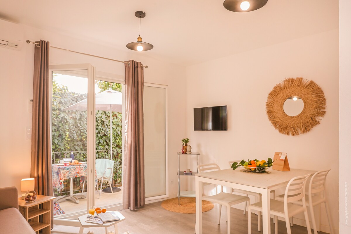 Appartement dans une villa familiale entre campagne et ville, proche de toute les commodités (Super marché, boulangerie, pharmacie,tabac presse...). 10 mn du centre ville en voiture ou en bus, 1 h a pieds en longeant la mer par une promenade très agréable. Logement indépendant 40 m2 une chambre lit 160 et un canapé convertible ,TV ,serviettes et draps fournis.cuisine toute équipée, douche, Clim parking privé dans la propriéte possibilité de profiter d'une pièce pour déposer matériel, vélos....