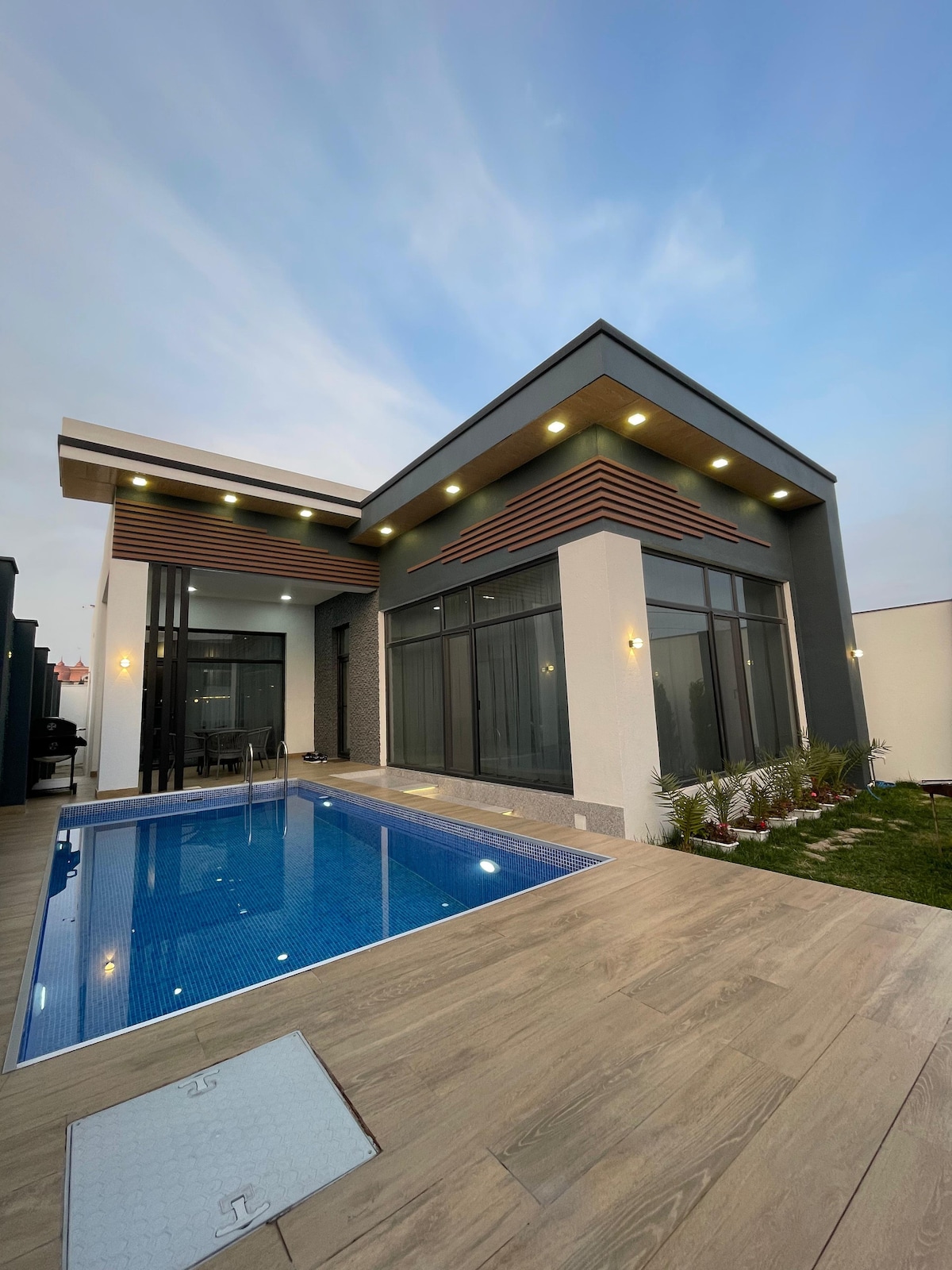 Relaxing in a luxury resort? Here. 🎁 FREE Airport Transfer (3+ nights, max 8 guests)! 📍 30m to Baku center (F1) • 5m to beach • 15m to WUF13 🏡 Welcome to Villa Deluxe! Your ultimate escape: • Illuminated pool & private sports court • 4 lavish bedrooms with plush colorful velvet beds • Grand lounge with oversized sectional & sleek dining • Ultra-modern chef's kitchen with island seating • Custom lighting & premium finishes throughout ✅ Book your escape today! 🛎️ Ask about our VIP Services