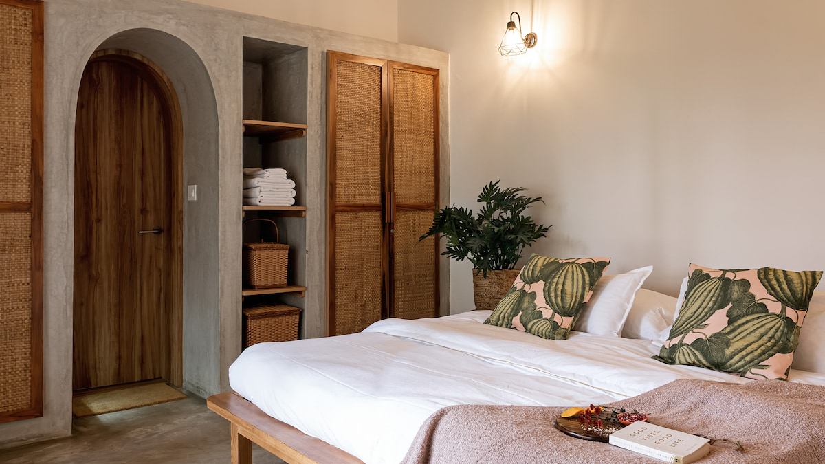 Mud & Mangoは、空港からわずか15分の快適な200平方フィートのガーデンスタジオです。この小さな家は、ユニークなタイルが施された素朴な手作りのインテリアを備えており、若いマンゴーの木が植えられた小さな専用庭園に面しています。角の物件なので、通行車や近くの幼稚園(午前8時~午後2時)の音が聞こえることがあります。夕方になると、ゆっくりと穏やかで美しい雰囲気に変わり、本当に魅力的です。私は、厚い植物の境界で仕切られた大きな敷地内に住んでおり、必要に応じて喜んでお手伝いします。