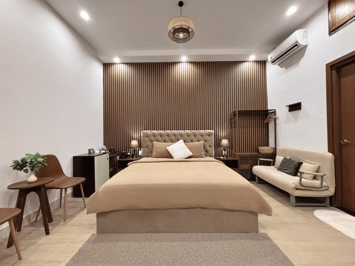 • 遅い到着でもセルフチェックインが簡単です。門限はありません! • 籐や竹といった自然素材とモダンなデザインが融合し、リラックスでき、瞑想的で穏やかな雰囲気を醸し出しています。 • 広々とした快適な客室。 • 居心地が良く、静かで安全な地域。 • 設備の整ったキッチンには、無料でご利用いただける家電製品が多数あります。 • 3泊ごとにメイクアップサービス(トイレ)を無料でご利用いただけます。 / セーフティボックスをご用意しております。必要な時にご利用ください。