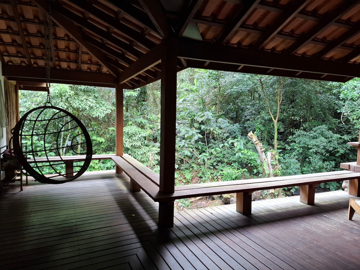 ビーチから3kmの大西洋の森の中にある小さな家で、敷地内には別の家もあります。美しく、シンプルで静かな場所。カップルに最適で、装飾がよく、快適です。キッチン用品、スマートテレビ、Wi-Fi、電子レンジ、冷蔵庫、コンロ、ハンモック、ゲームが完備されています。電圧220V。バルコニー、シャワー、ポータブルバーベキューグリル、駐車場、裏のデッキ、ゲートとフェンスで囲まれた共有の敷地。森林地帯で、野生動物がいる可能性があります。