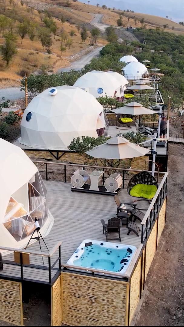 専用のジャグジーと、アラトー山脈とビシュケクのスカイラインを見渡せる広々としたテラスを備えたラグジュアリーなグランピングをお楽しみください。静かなピスタチオの庭園に囲まれたエコデザインのドームハウスには、床暖房、エアコン、高級アメニティを備えたフルバスルームが備わっています。清潔なリネン、ふかふかのタオル、無料のコーヒーと紅茶、24時間365日対応のフロントサービスをお楽しみください。ロマンスを求めるカップルや、自然に囲まれた5つ星のリトリートをお探しのゲストに最適です。