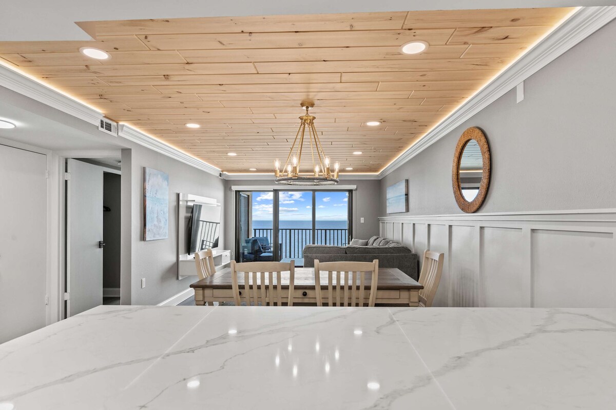 Note: Must be 25 or older to rent our home. Beautifully renovated 2 bedroom beach front condo with views of both the beach and bay. Enjoy watching the waves roll in or a stunning sunrise through floor to ceiling windows without ever getting out of your king size bed. In the evening, open your front door to witness breathtaking sunsets over the bay. Or just relax with a drink on the beachfront balcony and listen to the waves with a breathtaking view of the beach and ocean.