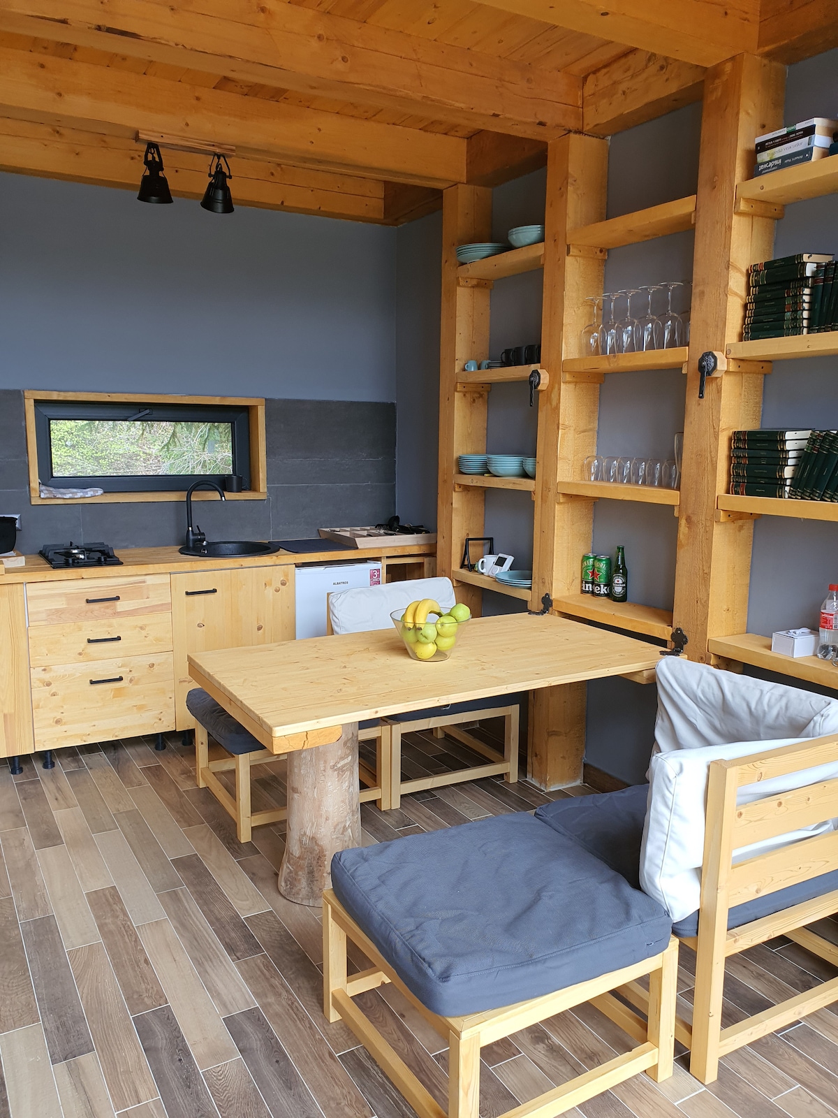 Located in Șaru Dornei, Suceava, 10 km from Vatra Dornei, on the picturesque lands of Bucovina, in a quiet and intimate location, overlooking the mountains. With a chic design, offering a comfortable and relaxing retreat, this tiny house is the ideal place for you and your partner, if you are looking for a romantic getaway in the middle of nature. Surrounded by forests and mountains, having amazing views, being the only accommodation unit on the 2300 sqm property, fully available for you.
