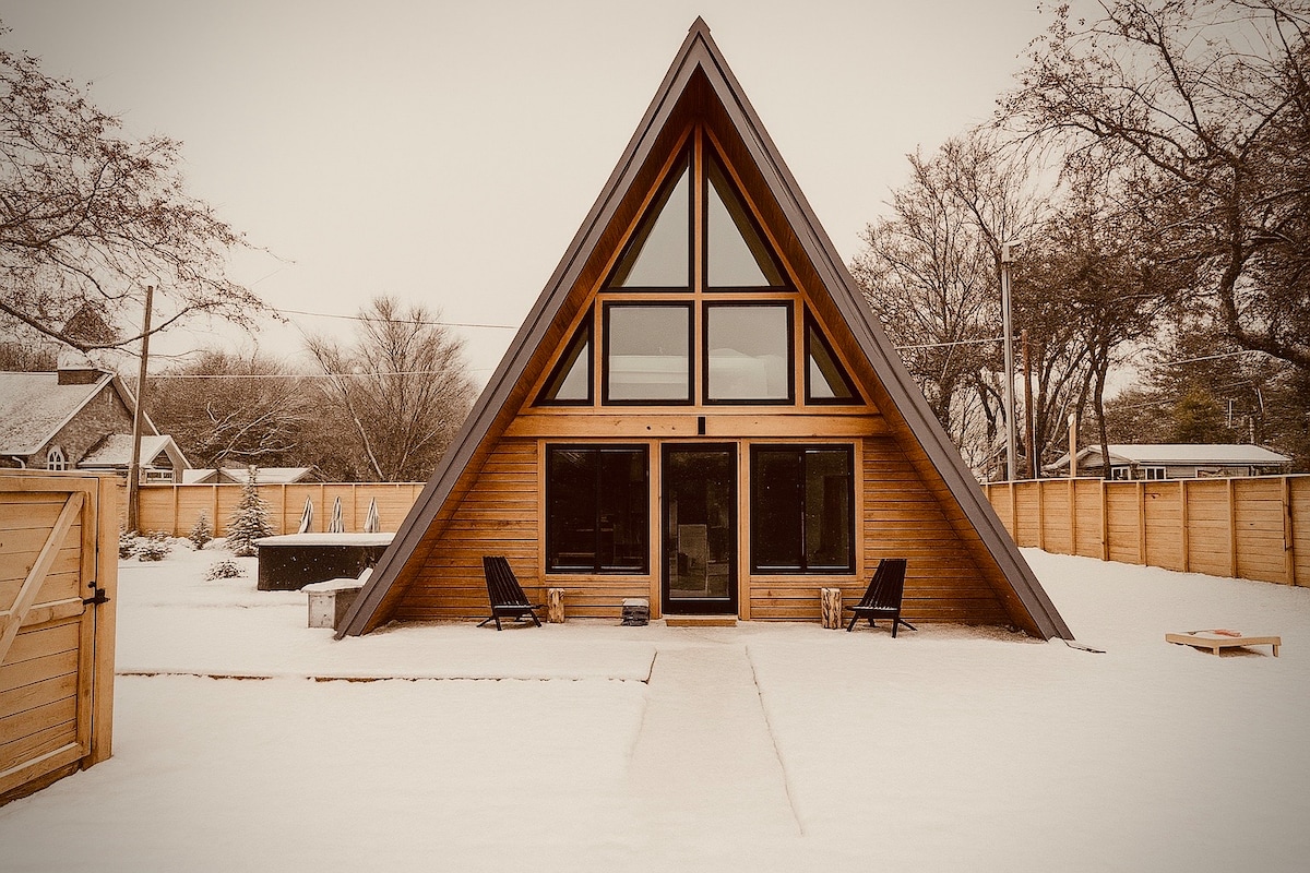スカンジキャンプAフレーム、スパ、巨大なフェンス付き庭、眺望