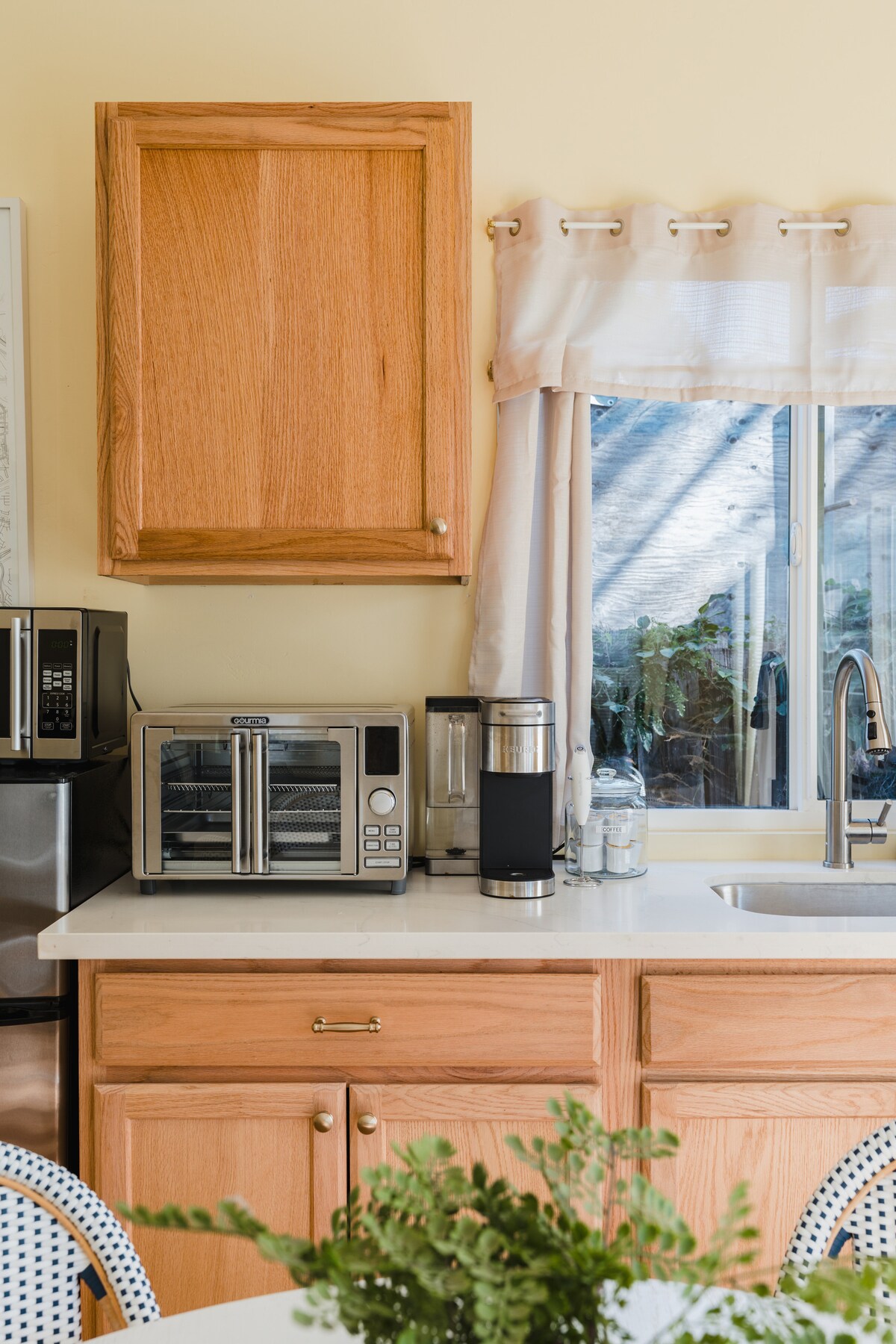 Escape to the serene Mango Guest Suite, your private garden-view oasis with its own guest entrance. Relax in a modern 310 sq ft space featuring a queen memory foam bed, loveseat, dining area, mini-kitchenette with a full-size refrigerator, in-room A/C & heating, and blackout curtains. Unwind in your dedicated patio area with two rocker chairs offering stunning views to the east. Enjoy free parking, easy access to Del Mar, Torrey Pines beaches/trails, UCSD, & quick connections to the I-5 highway.
