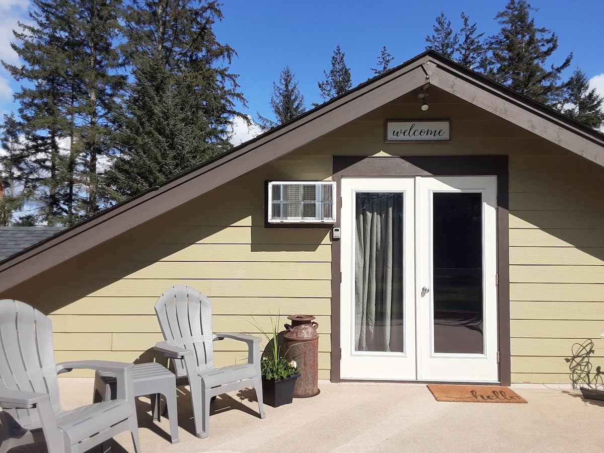 Hidden Pasture Bungalowは、ファーンデールの田舎にあり、ベリンガムの中心部から20分です。 私たちの物件は畑と木々に囲まれています。 専用玄関と専用バスルームを備えた、私たちのガレージの上の階にある専用のワンルームスペースをお楽しみください。 冷蔵庫と電子レンジ、トースター、コーヒーポット、電気スキレット、電気ティーケトル、食器と調理器具を備えたキッチン。 DishNetwork付きテレビ。Wi-Fi利用可能。 バルコニーに座って景色をお楽しみください! ペットの同伴はできません。ハウスルールをご覧ください。