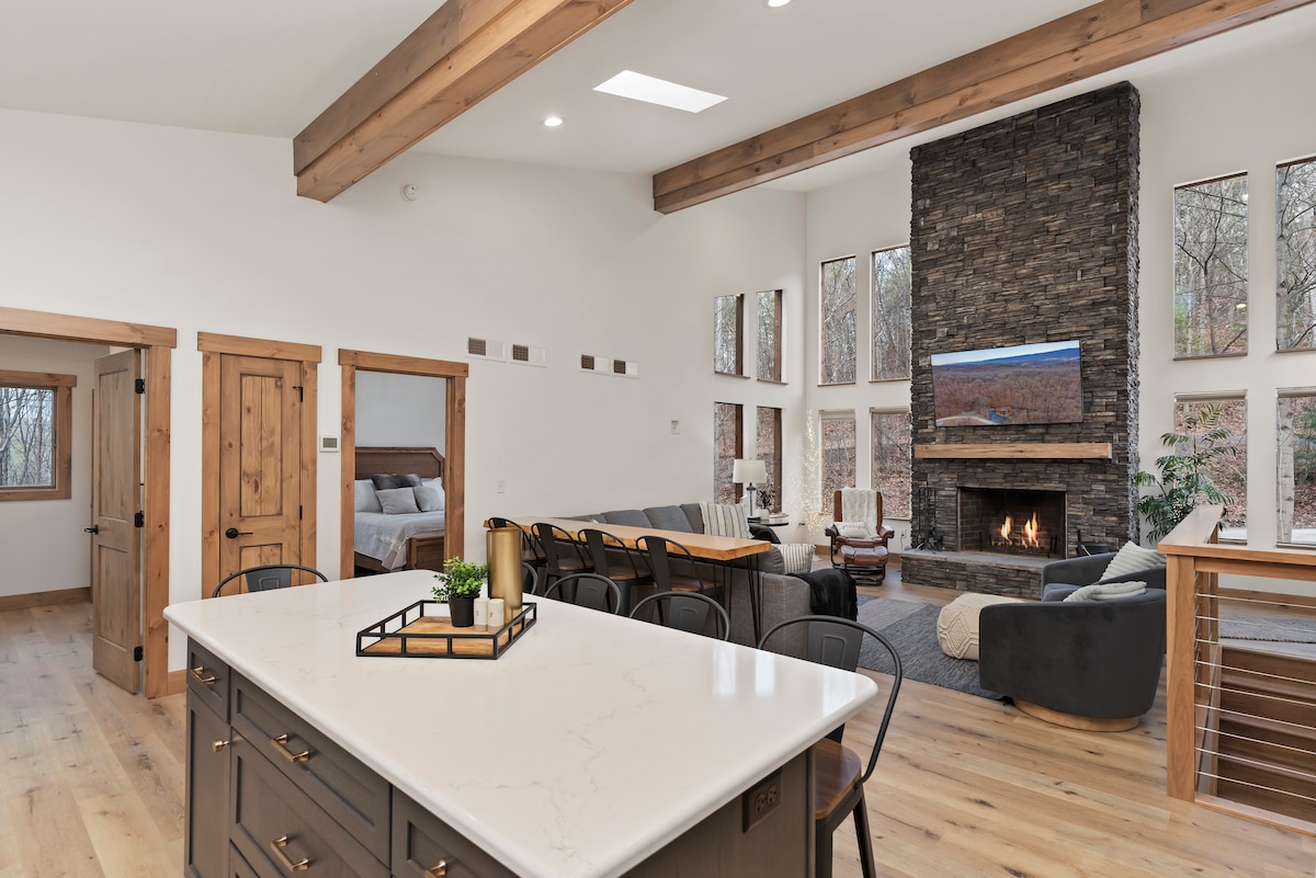 レイスタウン湖のシャイ・ビーバー・ボート・ランチから1マイル未満のモダンな4ベッドルーム/4バスルームキャビン。穏やかな森に囲まれたこのプライベートホームは、家族や友人と過ごすのに最適なオープンで現代的なデザインです。ガスグリル、リラックスできるホットタブ、居心地の良いファイヤーピットを備えた高層デッキをお楽しみください。湖で過ごす日やハイキング、自然の中でくつろぐのに最適です。リラックスしたり冒険したりするのに理想的な隠れ家です。