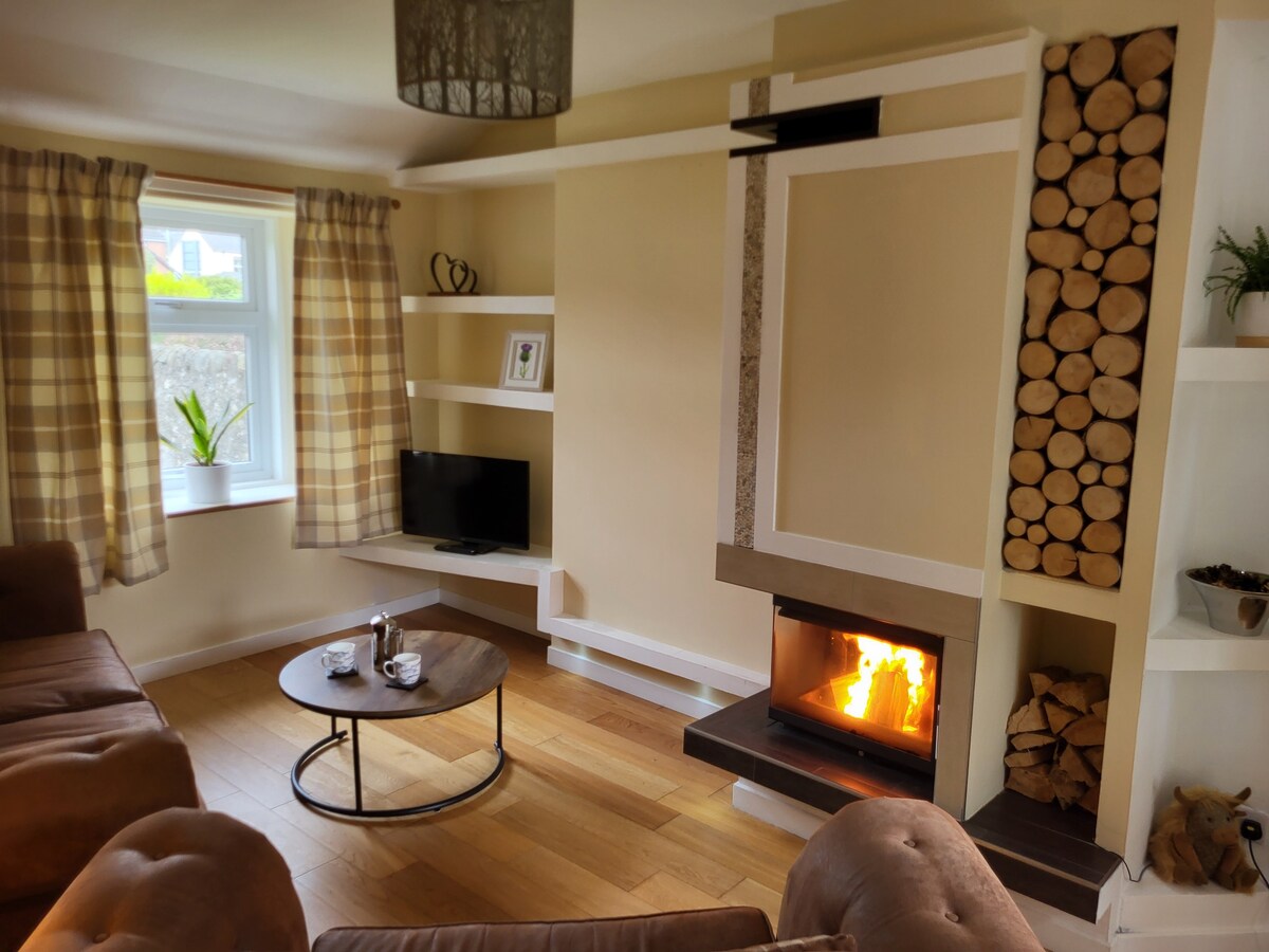 Delightful 2 bedroom cottage In a quiet residential area . Set in its own garden With private parking for 2 cars *( Please see note in guest access*). Spacious family kitchen with separate fully equipped utility room and a cosy sitting room featuring a log burner. 1 twin room and 1 double bedroom with garden views and USB charging sockets throughout . Modern shower room. Secure area for bikes,golf equipment, kayaks skis etc. only a few minutes walk from Blairgowrie town centre.