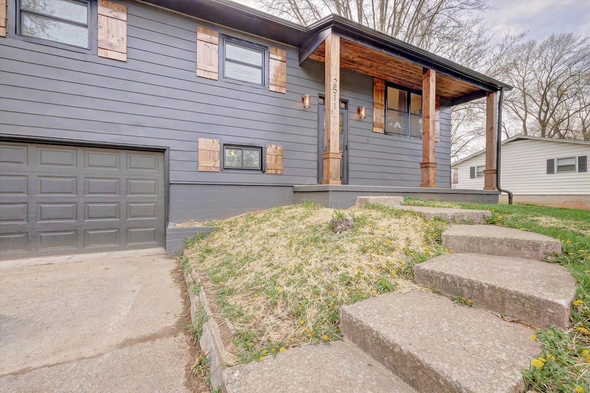 ご家族一緒に、おしゃれなオープンコンセプトの宿泊先での滞在をお楽しみください。 5ベッドルーム、2バスルーム、2100平方フィート。 すべての個室にテレビがあります。 ゲームルーム、ランドリー、1 GBのWi-Fiをお楽しみください! ブルーミントンで最高のロケーションにあります。 犬同伴OK(猫は不可)、裏庭は完全にフェンスで囲まれています! インディアナ大学、スタジアム、カスケーズパーク/ゴルフコース、ローワーカスケーズの散歩道、レストラン、ショッピングに近いです! アーリーチェックイン/レイトチェックアウトは20ドルです。 右上のをクリックして、❤️お気にいりにリスティングを追加してください