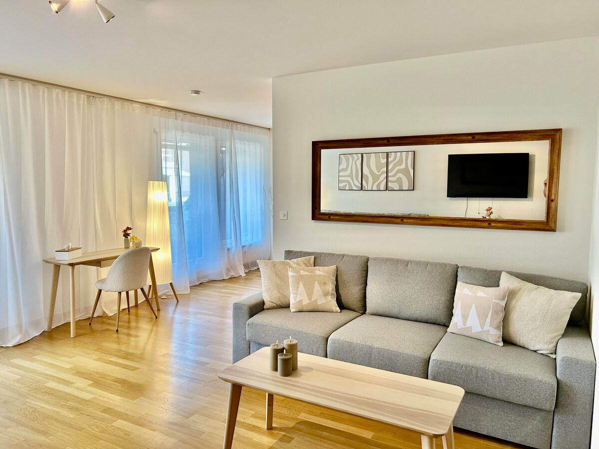 Welcome to our beautiful new apartment right on the Rhine! Enjoy breathtaking river views and a stylish, modern interior designed for your comfort. The spacious bedroom with a 1.60 m bed and a comfortable sofa bed provide the perfect space to relax. With the tram line 8 just a 5-minute walk away, you have direct access to Basel. The EuroAirport, Vitra Museum, Fondation Beyeler, and many other attractions are within easy reach. We look forward to welcoming you!