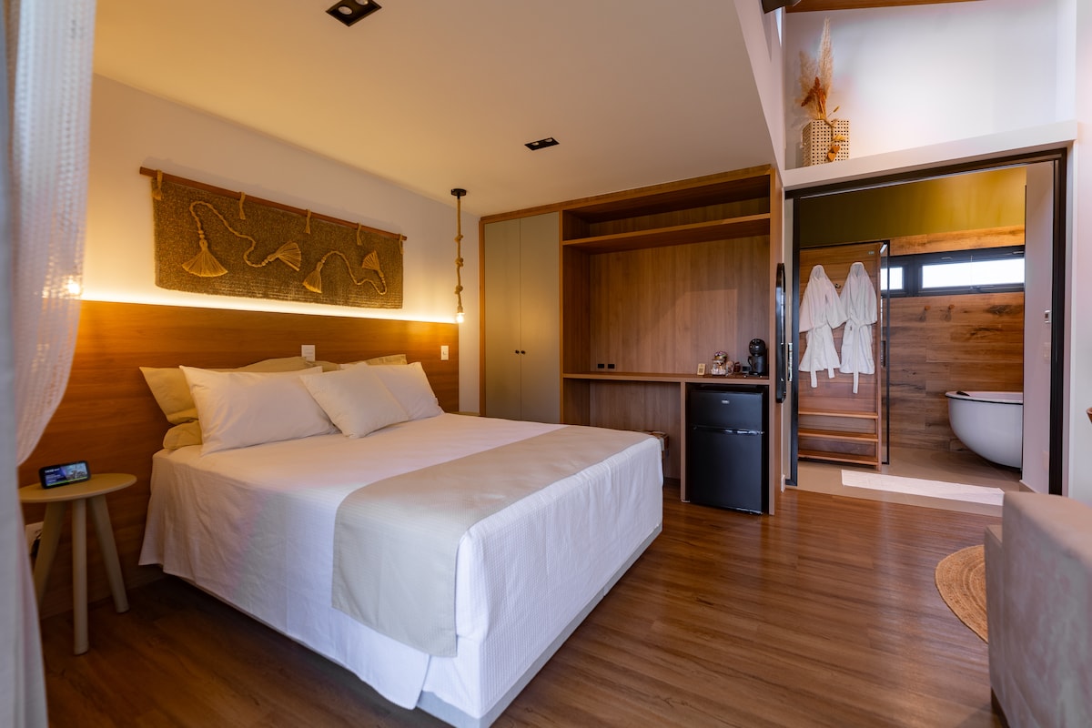 この静かでスタイリッシュでスタイリッシュな空間でリラックスしましょう。 Alexa、ジャグジーと完全な構造を備えたシャレーで、ブラジルで最もドイツの都市での滞在を楽しむことができます。 また、アームチェア、果樹園、自然のトレイル、野菜園、設備の整ったキッチン、冷暖房、フルプログラミング付きテレビ、Netflix、高速Wi - Fiネットワークなどを備えたデッキもあります。