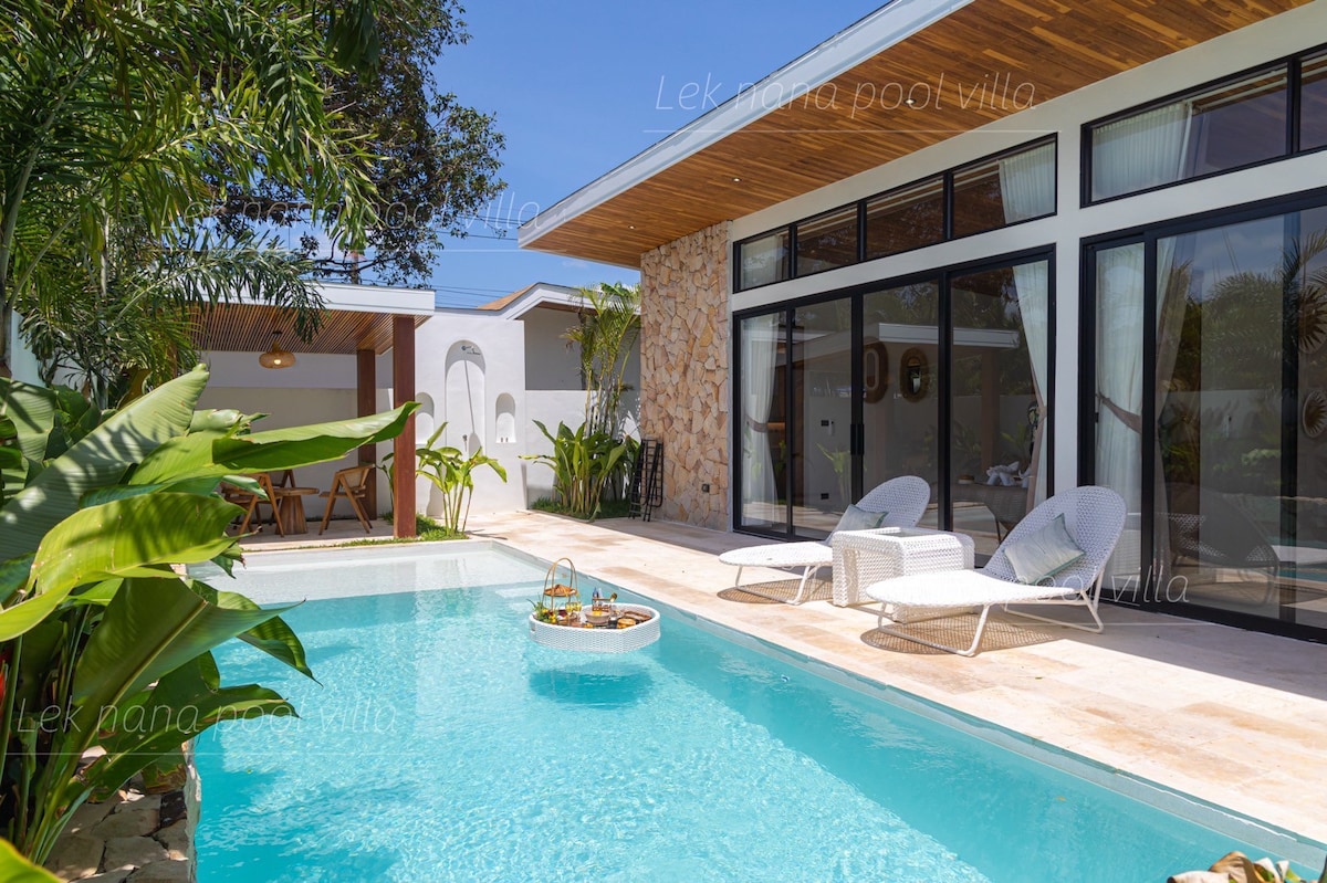 サムイ島の南の熱帯地域には、ヴィラ「Baan Suaan Kluay Mai」(オーキッドガーデン)があります。海の近くにあるモダンな3ベッドルームの隠れ家ヴィラで、専用の塩水プールがあります。3つのビーチから徒歩数分です。すべての光熱費が含まれています。ご要望に応じて朝食をご用意します。 プールサイドでリラックスしてください。日陰に座って冷たい飲み物をお楽しみください。本当に逃避できるヴィラです。 設備の整ったモダンなキッチン。料理が好きではないですか?トングクルットビーチビレッジはわずか800メートルのところにあり、多くのカフェやレストランがあります。