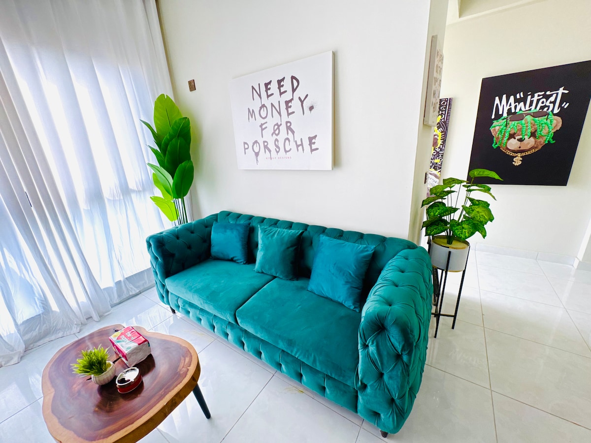 DHA Phase VI (スモールブカリ)の新しい建物の2階(エレベーターなし)にあるこの明るくカラフルなスタジオをお楽しみください。 ベッドのスマートプロジェクターでNetflixとYouTubeを観たり🎥、リビングルームのLEDで映画を楽しんだりできます📺。ベルベットのソファでくつろぎ💺、モダンなキッチンで料理をし🍳、素敵な絵の横のアークランプの下で食事を楽しみましょう🎨。2つのバスルーム🚿があるので、待ち時間はありません。 モダンでおしゃれで超快適 ✨