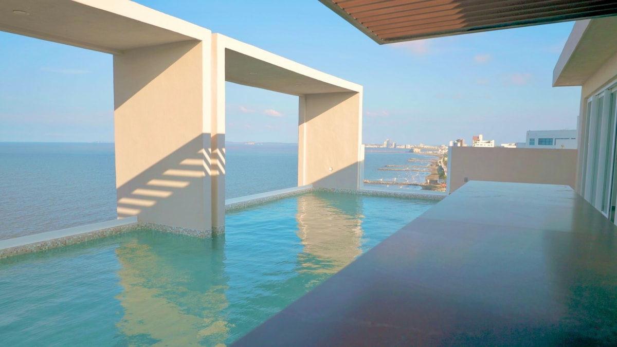 美しい家具とデザインの、海に面した高級アパート。ビーチから20メートル、プールとジム付き。インターネット、サウンドシステム、テレビ、設備の整ったキッチンなど、すべての設備をお楽しみください。週末の休暇に最適です。快適さ、安らぎ、そして良い生活を大切にする方々のために設計されています。 ドラドのショッピングセンター、豪華なレストラン、リビエラ・ベラクルザナの観光エリアから10分。
