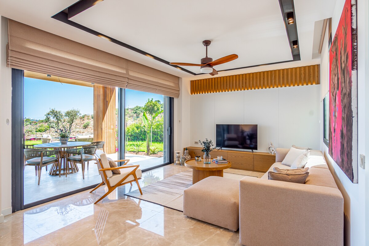 Suelo Flat Villaへようこそ。 私たちのヴィラは、ボドルムで最も人気のあるエリアのひとつ、トゥルグトレイスの中心部に位置しています。 専用の庭園を備え、快適さと静けさが完璧に融合した空間を提供します。 夏はエアコンを、冬は床暖房をご利用いただけますので、快適にお過ごしいただけます。