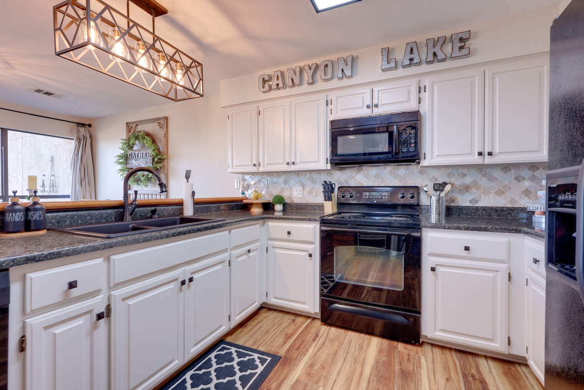 パティオでリラックスして、美しいキャニオンレイクの景色をお楽しみください。 新しく改装され、リネン、ケーブルテレビ、Wi-Fi、調理器具、コーヒーメーカーが完備されています。 私たちは、近くにレストランがいくつかあり、楽しいアクティビティがたくさんある中心部に位置しています。公共ビーチとキャニオンレイクマリーナから1ブロック、ホワイトウォーターアンフィシアターとグアダルーペ川のホースシューセクション(チュービングに最適な場所)から5マイル、ウィンバリー、サンマルコス、グルーン、ニューブラウンフェルズまで車で20分です。