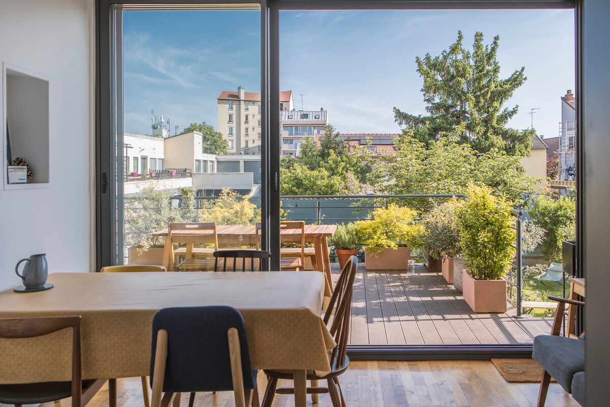 寝室2室のタウンハウスの屋上テラス・パリまで15分
