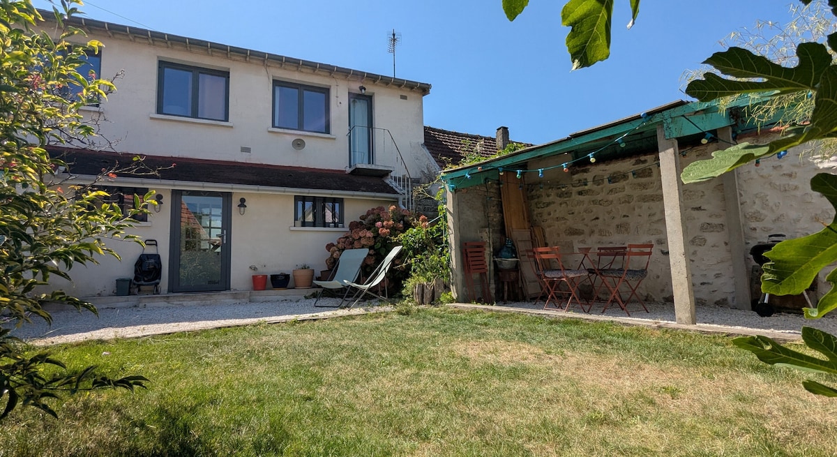 ジヴェルニーの近くの美しい村にある、庭の奥に青いシャッターの小さな一戸建ての家があります。静かでのどかな休憩に最適です。 ノルマンディーの入り口にあります。ルーアンまたはパリ方面のA13へのアクセスが簡単です。 ヴェルノンまたはガイヨン駅。 村には、朝にパンやクロワッサンの配達を行う、フレンドリーな小さなバーがあります。(月曜日を除く毎日)
