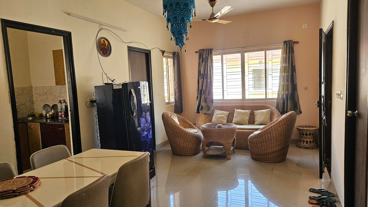 こちらの静かな宿泊先では、家族みんなやお友達と一緒にのんびりと過ごせます。プラント駅に非常に近く、ショナジュリ・ハートから徒歩圏内にあります。シャンティニケタンの主要な場所すべてにアクセスできますが、静かな環境での滞在をお楽しみいただけます。敷地内には警備員が配置されています。キッチンでは、簡単な料理や食事の温めができます。 宿泊施設内にはWi-Fiがありませんので、その点を考慮してご予約いただくか、滞在中は少しデジタルデトックスをお楽しみください。:) LGBTQフレンドリーです。