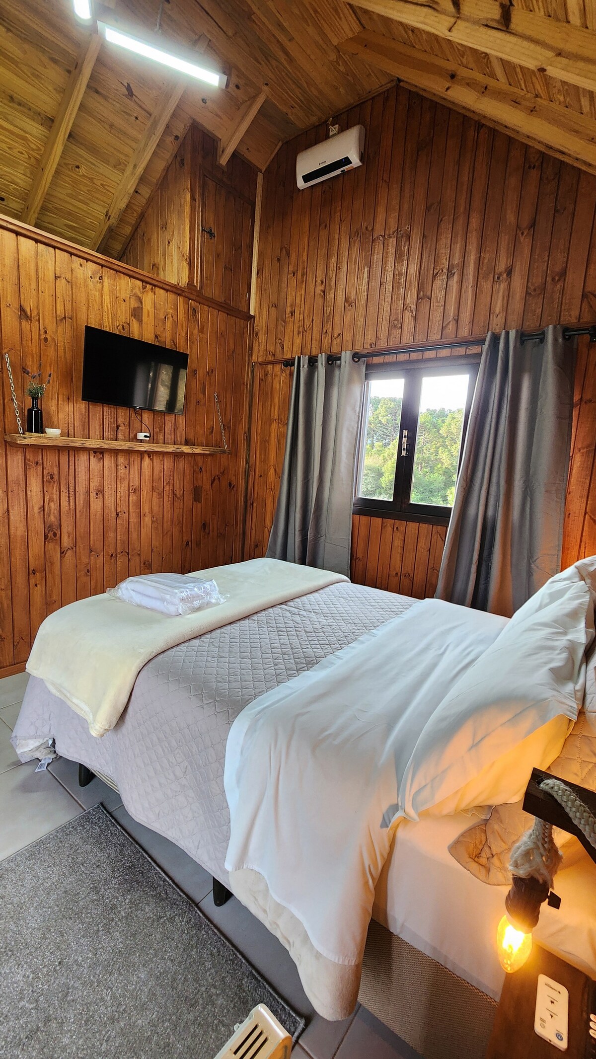 夜空で最も明るい星にちなんで名付けられたカバナ・シリウスは、ユニークな体験を提供します。ワインセラー、ヒーター、4名様用のジャグジースパ、ゴイアベイラズの森のパノラマビュー。800スレッドのコットン製のベッドリネンを備えたクイーンサイズベッド2台、トラスサルディ製バスタブ、電気タオルラック、高速インターネット。断熱・防音の壁が静けさを保証します。デッキからは、川、森、山々のぞめる一方で、暖炉やバーベキューグリルをお楽しみいただけます。