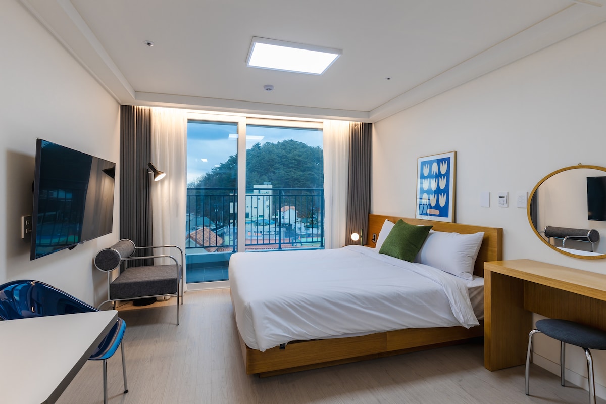 こんにちは^^ 現地に住み、宿泊施設を管理しているトゥルステイです。 玄関から入ると、リビングルームの窓から美しい海があなたを迎えます。 12時にチェックアウトするので、ゆったりとした朝をお過ごしください。 部屋タイプ - 1.5ルーム(ベッドルーム+リビング、キッチン+トイレ) 高層オーシャンビュー10階から最高のオーシャンビューを楽しめます。 リビングのテレビでは、NetflixやYouTubeなどのOTT動画をお楽しみいただけます。 Bluetoothスピーカーでお好みでお部屋を満たしてみてください KTXミュクホ駅/東海エリアと市外バスターミナルからタクシーで5分です。 宿泊施設から徒歩3分以内には、ハンセム海水浴場、ビーチ散歩道があります。 徒歩5分以内に美食レストラン街、建物内1階にあるイーマート24コンビニ、イーマート、食料品マート、ディソー、ロッテシネマなど、市内中心部への移動が便利です。 屋上展望台、フィットネスセンター以外の運動施設、コインランドリールームなど、建物内の設備をご利用いただけます。(一部有料) -その他- 1. チェックイン当日に案内メッセージ(玄関のデジタルドアロックのパスワード、部屋番号、案内事項)をお送りします。 2. 宿泊施設の住所:江戸道東海市韓島路136-4