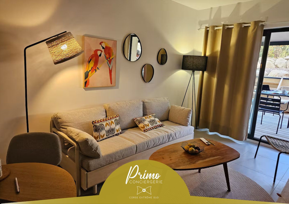 Minivilla 2-4 pers. Détente dans petit hameau typique, au calme entre mer et montagne, 6 km de Porto Vecchio et ses plages. Villa mitoyenne neuve de 45m2. 2-4 personnes. ( 1 chambre + 1 vrai canapé-lit). jardin privatif pour repas en extérieur ou sieste à l ombre. Départ idéal pour découvrir la Corse du Sud. L équipement neuf tout confort vous feront sentir comme à la maison! Linge compris,Climatisation, wifi, LL, LV, mobilier extérieur, Parking⊠Autres Prestations possibles sur demande