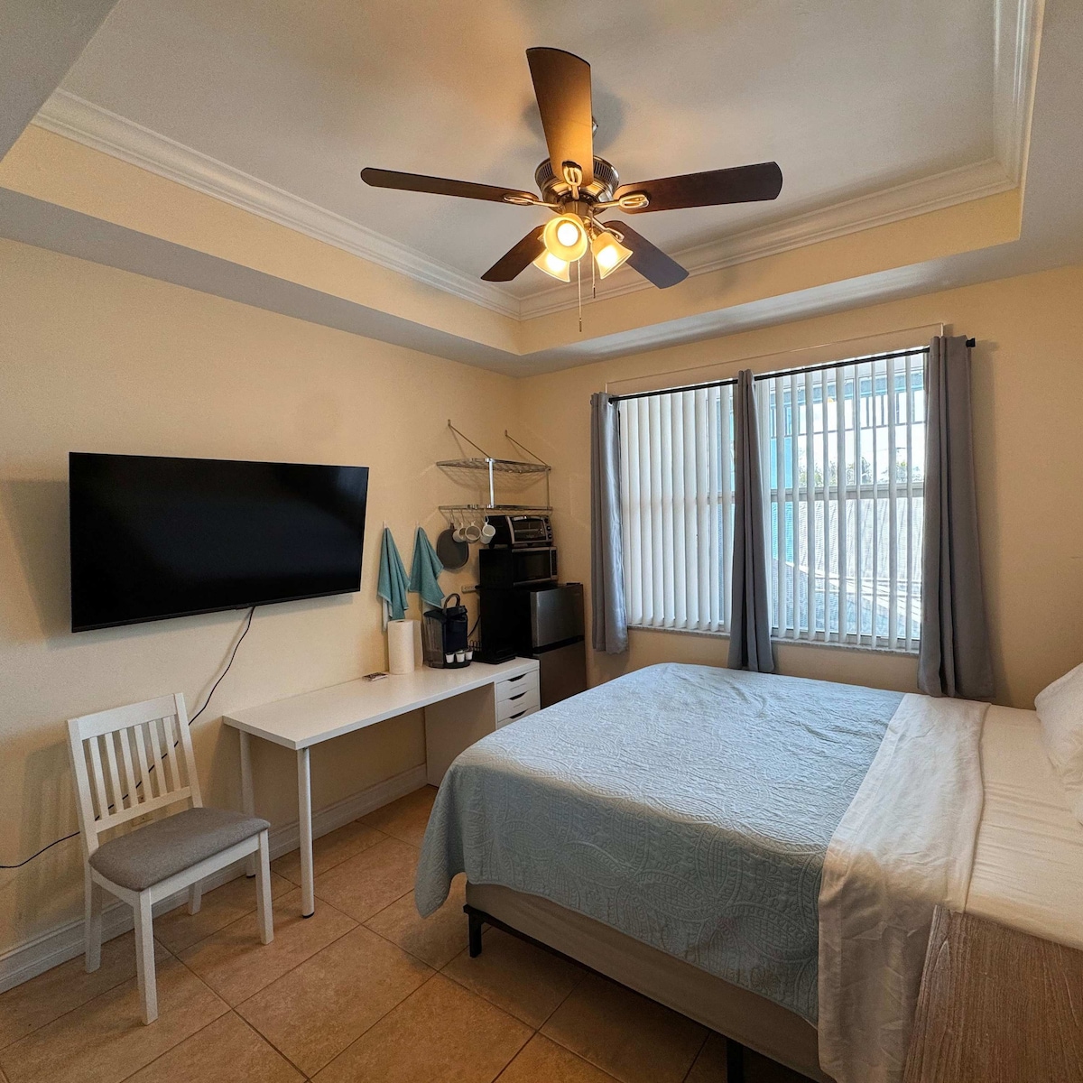 ボニタビーチからわずか1マイルのボニタサンセットコンドミニアムにある、快適なホテルスタイルのスタジオでリラックスしましょう! クイーンベッド、衣類収納用の追加引き出し、専用バスルーム、ミニ冷蔵庫/冷凍庫、電子レンジ、オーブントースター、壁掛けテレビを備えています。 ビーチタオルが用意されており、自転車とビーチ用品もご利用いただけます(先着順)。 ボニタスプリングスの中心部でシンプルな休暇にぴったりです! もっと広いお部屋が必要ですか?同じ複合施設内に2ベッド/2バスのコンドミニアムもあります。グループや家族での利用に最適です。