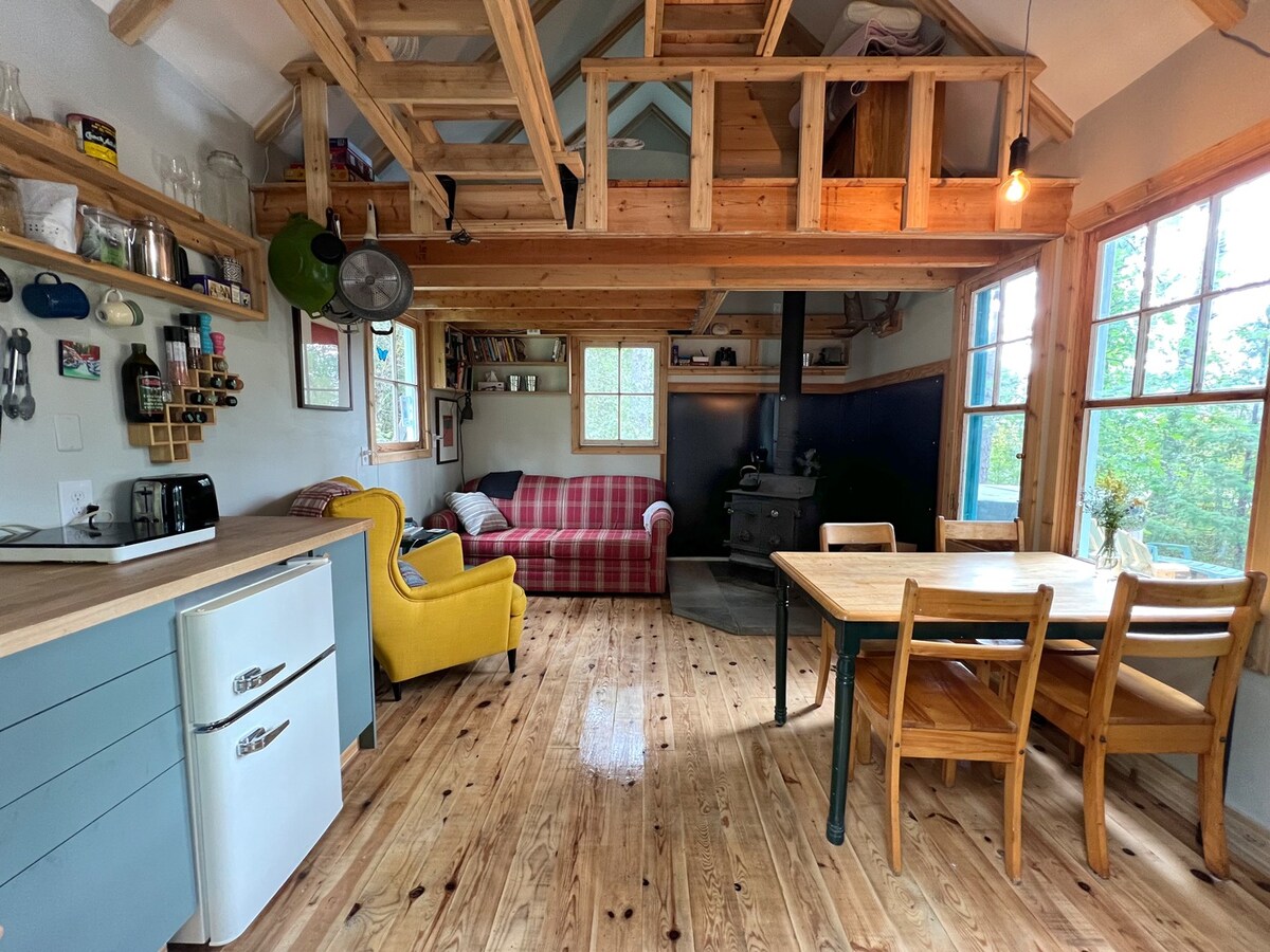 オフグリッドの三角屋根のキャビン、森の中でくつろぎましょう!