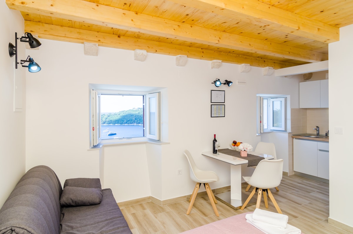 アパートホライズン-1は、ドゥブロヴニクの中心部に近く、海からわずか100メートルの場所にあります。 アパートからは、海、ロクルム島、旧市街のパノラマが見渡せます。 アパートには快適な休暇を過ごすための設備が揃っています。 60平方メートルの広さがあり、ソファー付きのリビングルーム、キッチン、シャワー付きのバスルーム、ダブルベッド付きのベッドルームで構成されています。 自宅のような居心地をお楽しみください。ようこそ!