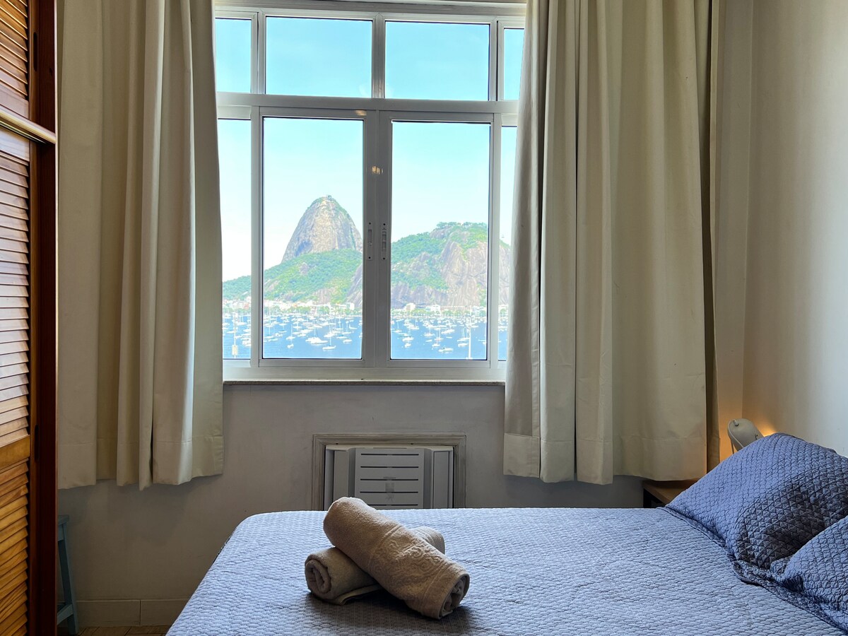 クイーンサイズのダブルベッドを備えた清潔なスタジオ。 Airbnbには、グアナバラ湾とシュガーローフ山の息をのむような正面の眺めが見えます。 リオデジャネイロの最も素晴らしい景色の中で日の出を見ましょう。 ホームオフィス用のデスク、窓用エアコン、スマートテレビ、冷凍庫付き冷蔵庫があります。2つのリングガスコンロとアパートには、リビングとベッドルームの両方に浄水器と天井ファンがあります。 温かいシャワー。 地下鉄の駅から徒歩5分。