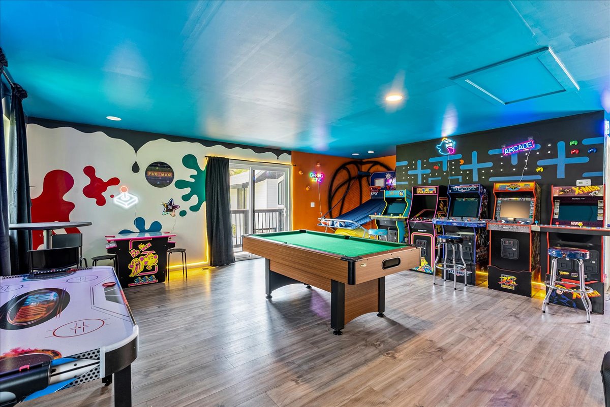 レトロエレガント:5寝室、プール、ジャグジー、キング2台、ゲーセン