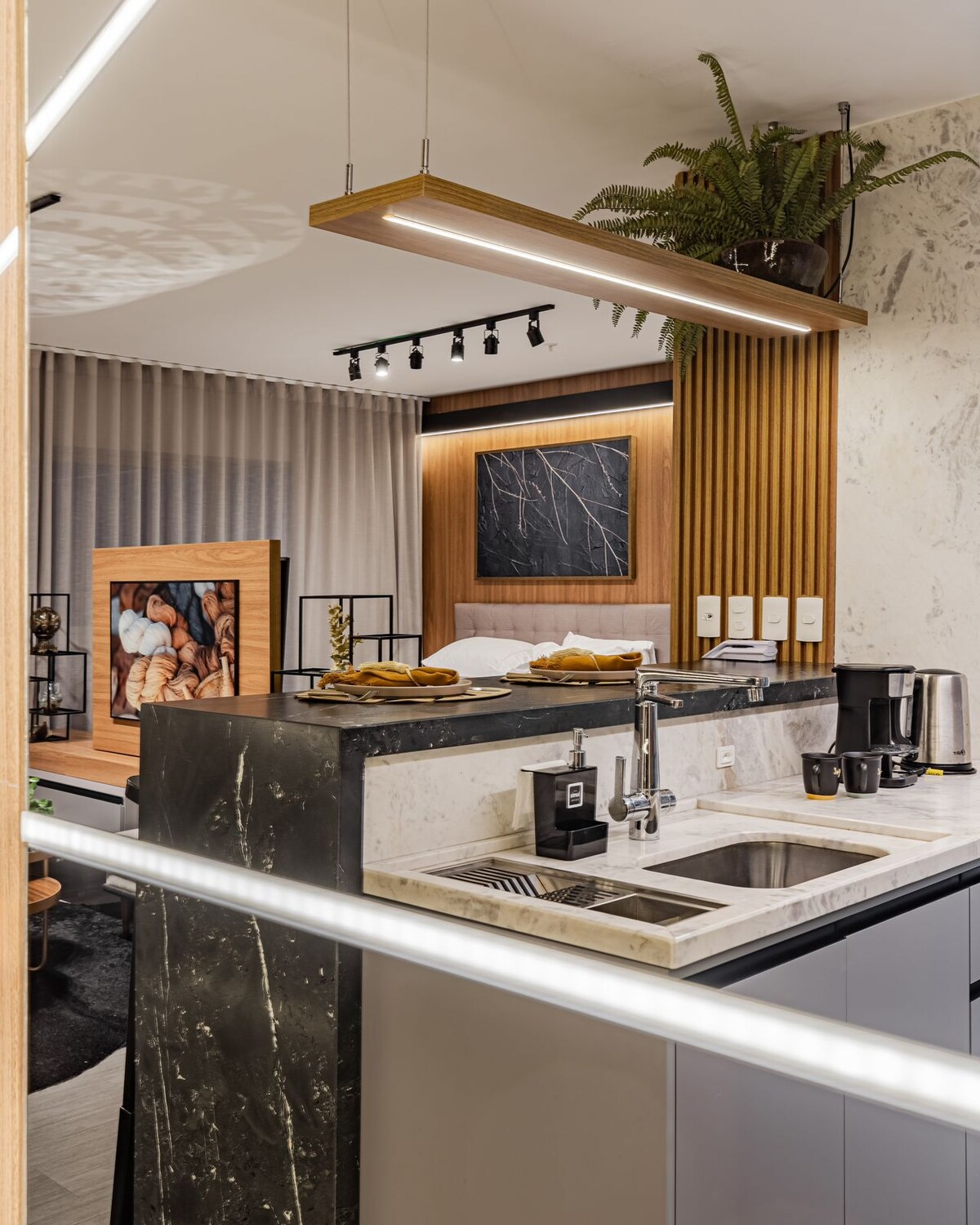 快適でスタイリッシュなスタジオでユニークな体験をしましょう。細部にまでこだわり、快適さ、機能性、そしてたくさんのスタイルを提供しています。 計画されているブルーAPは、リラックスするように設計された柔らかい照明と装飾を備えた排他的な差別化です。スマートで多目的なモバイルは、ダイニングテーブルやクッキングサポートになります。機能性を重視している方に最適です。 デジタルピアノは、リラックスしたり、練習したり、インスピレーションを得たりすることができます。 スマートテレビ、Wi - Fi。