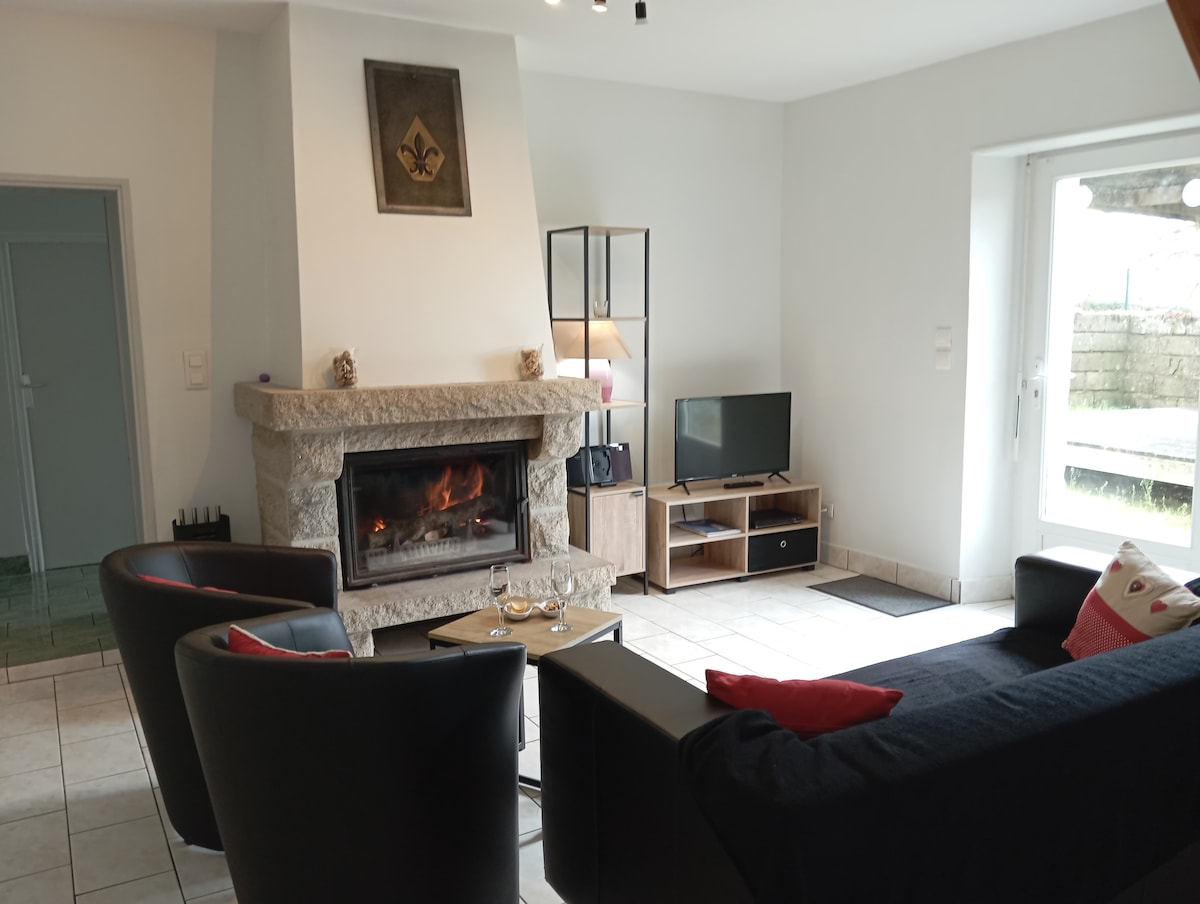 ブルターニュ地方の典型的な邸宅で、快適で新しい家具が揃っています。静かで完全に開けた景色は休息を呼びかけます。海岸から30分、ギンガンプから10分です。 夕方のアニメーションには、卓球台とバーベキューをご利用いただけます。 ようこそ、そしてまたお会いしましょう。 イザベル