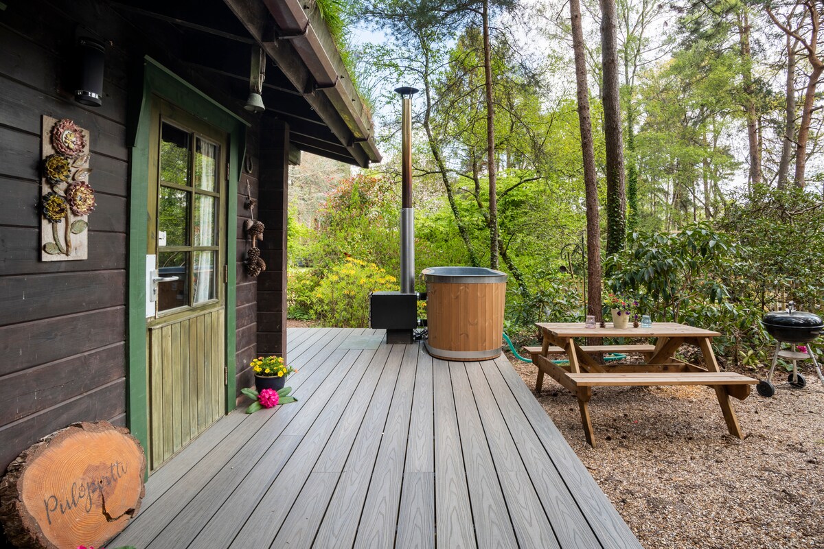 専用ジャグジー付きの快適な森のログハウス