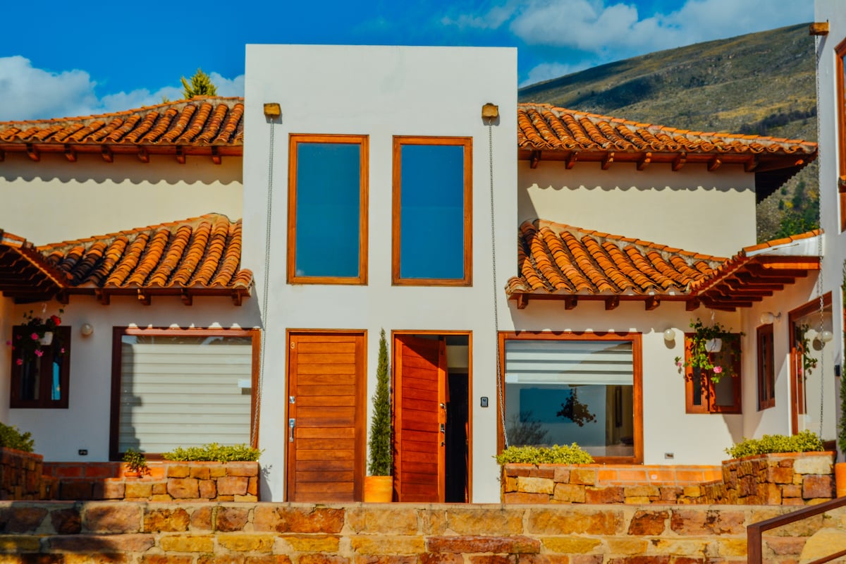 マドリゲラ・デル・トポにご関心をお寄せいただきありがとうございます。 私たちの家は、ボゴタから約4時間のボヤカのクイティバ市のトータ湖にあり、静かな環境で、木々や絵のように美しい風景に囲まれ、湖のパノラマビューを楽しめます。私たちは、滞在中の快適さを保証するために、とても快適なダブルベッド2台を備えた客室とロフトをご用意しています。また、追加料金で、湖を望む薪サウナ、シャワーもご利用いただけます。