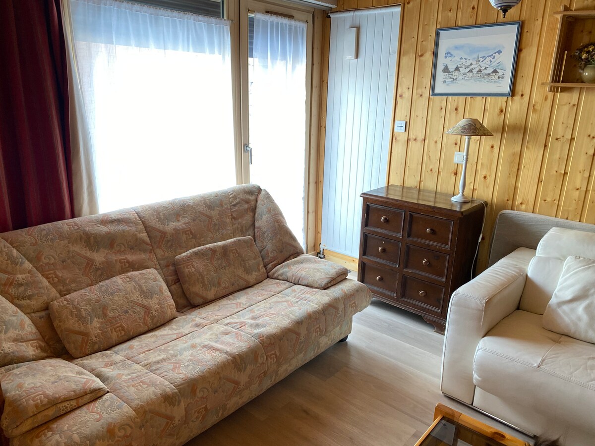 料金900ユーロ/21泊 プランをよくお読みください - スキー場へのアクセスに関するエリアの説明 約30平方メートルのこの宿泊施設は静かで、家族全員でリラックスした滞在を楽しめます。 シャレーのガーデンフロアに位置し、小さな屋外テラスを楽しむことができます。家具が完備されており、最大4人まで収容できます。 スタジオにはソファベッド(160/200)と小さな二段ベッドが2台あります 1匹の犬を条件付きで受け入れます(追加料金5ユーロ/日)猫は受け入れません