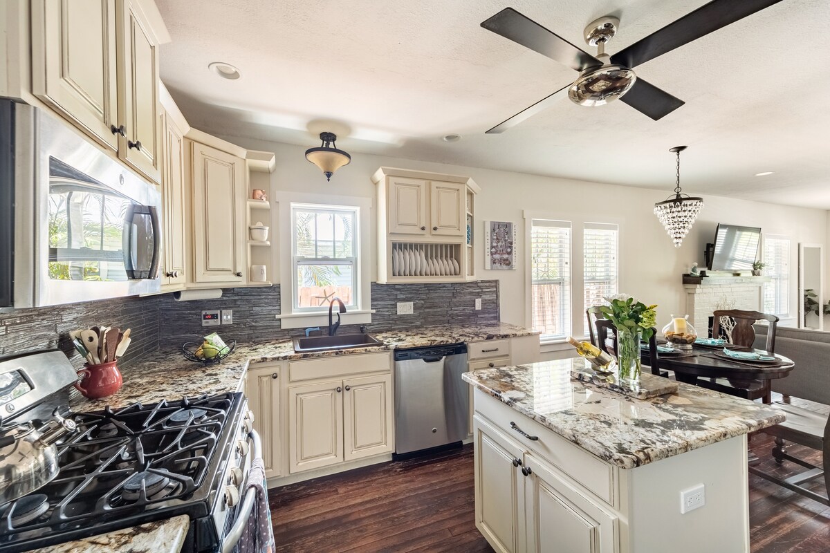 Explore the charm of this three-bedroom, two-bathroom bungalow – a luxurious haven where style meets relaxation. Enjoy moments of tranquility by the spa and screened pool, complete with inviting swim-up barstools, or unwind in the indulgent hot tub accommodating up to eight guests. Step into the serene outdoor oasis, adorned with elegant furnishings against the picturesque backdrop of a fenced backyard. Your getaway awaits, conveniently situated near the city's premier attractions.