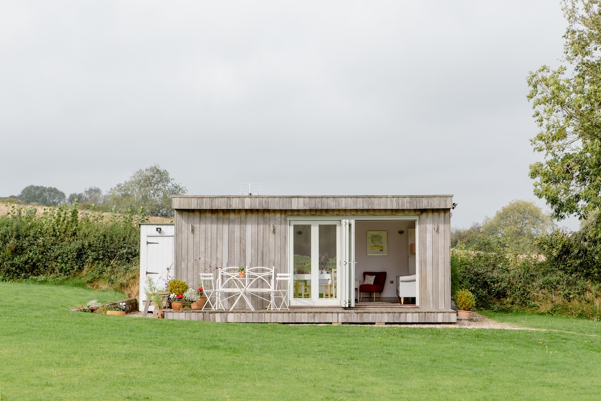 ドーセットの美しい森にある人里離れたキツツキのログハウス