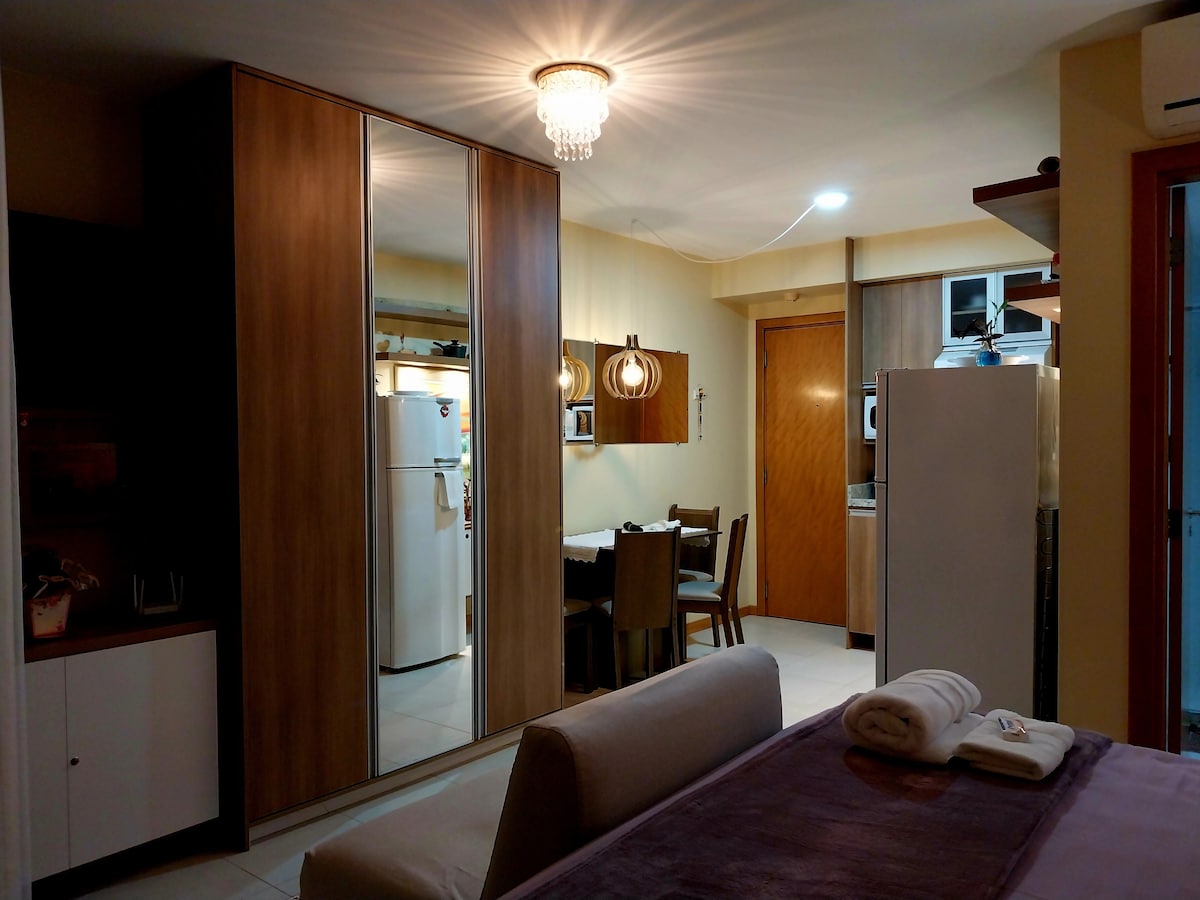 🏡 スタジオ・テレロ - 16m²、ブラジリア南西部 コンパクトでモダン、機能的。エスプラナーダと空港から10分、ポン・デ・アスーカルの隣。 ✨ インバーター式エアコン、電子レンジ、エアフライヤー、コーヒーメーカー、アイロン、サンドイッチメーカー、ヘアドライヤー、120Lミニバー、シングルベッド。 🛏️ ベッドリネン、タオル、500メガのWi-Fiが含まれています。 最高の滞在のためにすべてが考えられています!