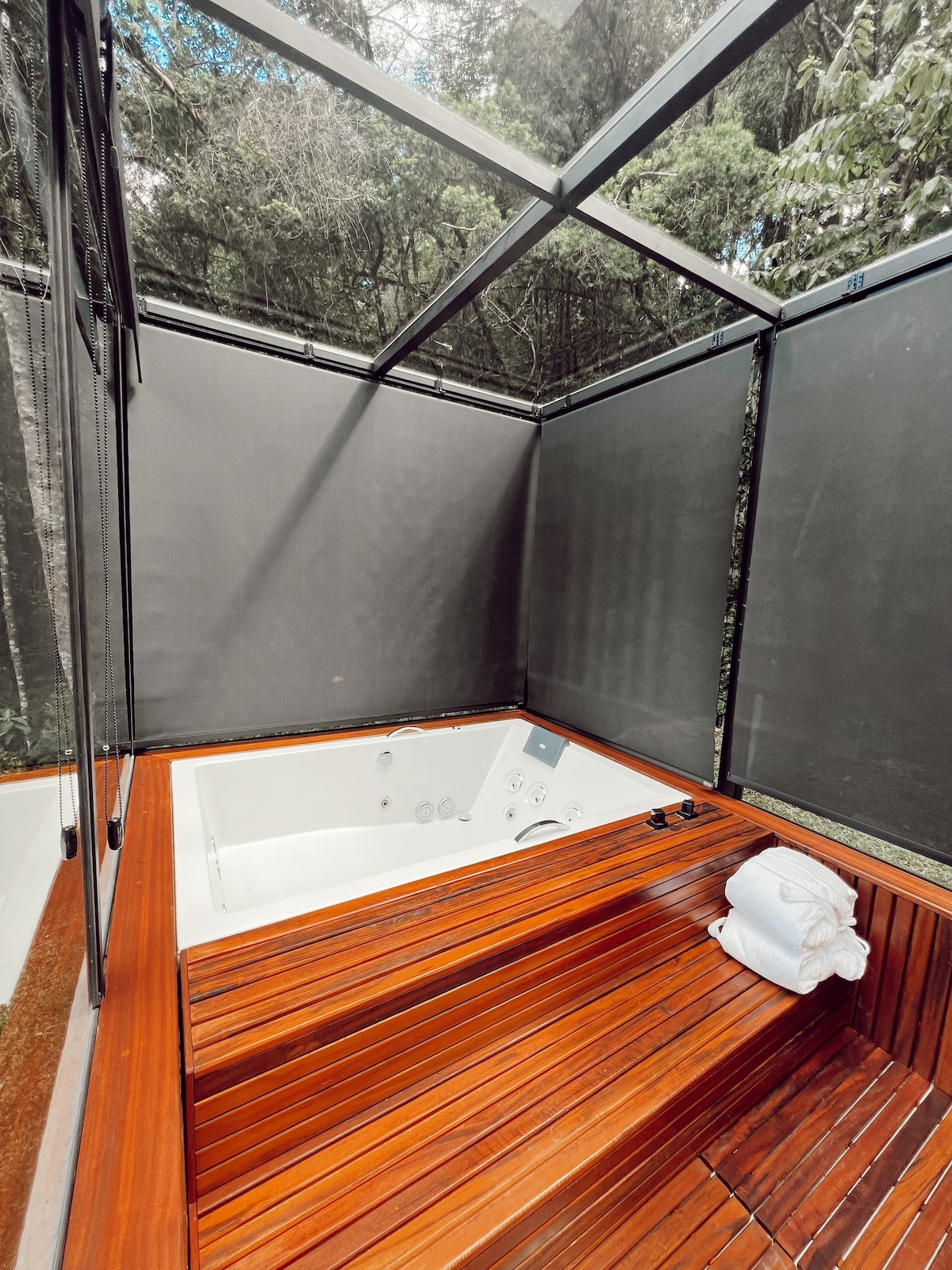ロマンチックなロフトでバスタブと山の景色を楽しもう スカイ2は洗練された居心地の良いロフトで、自然の中で快適さとプライバシーを楽しみたいカップルに最適です。 お部屋にはエレガントで設備の整ったスイートがあり、リビングルームには必要に応じてお子様を収容できるソファベッドがあります。 Sky 2の大きな差はバスルームで、豪華なバスタブがあり、カンポス・ド・ジョルドンの山々の素晴らしい景色を眺めることができます。